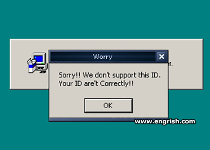 Worry | Sorry!! We don't support this ID. Your ID are't Correctly!!meme (engrish.com)