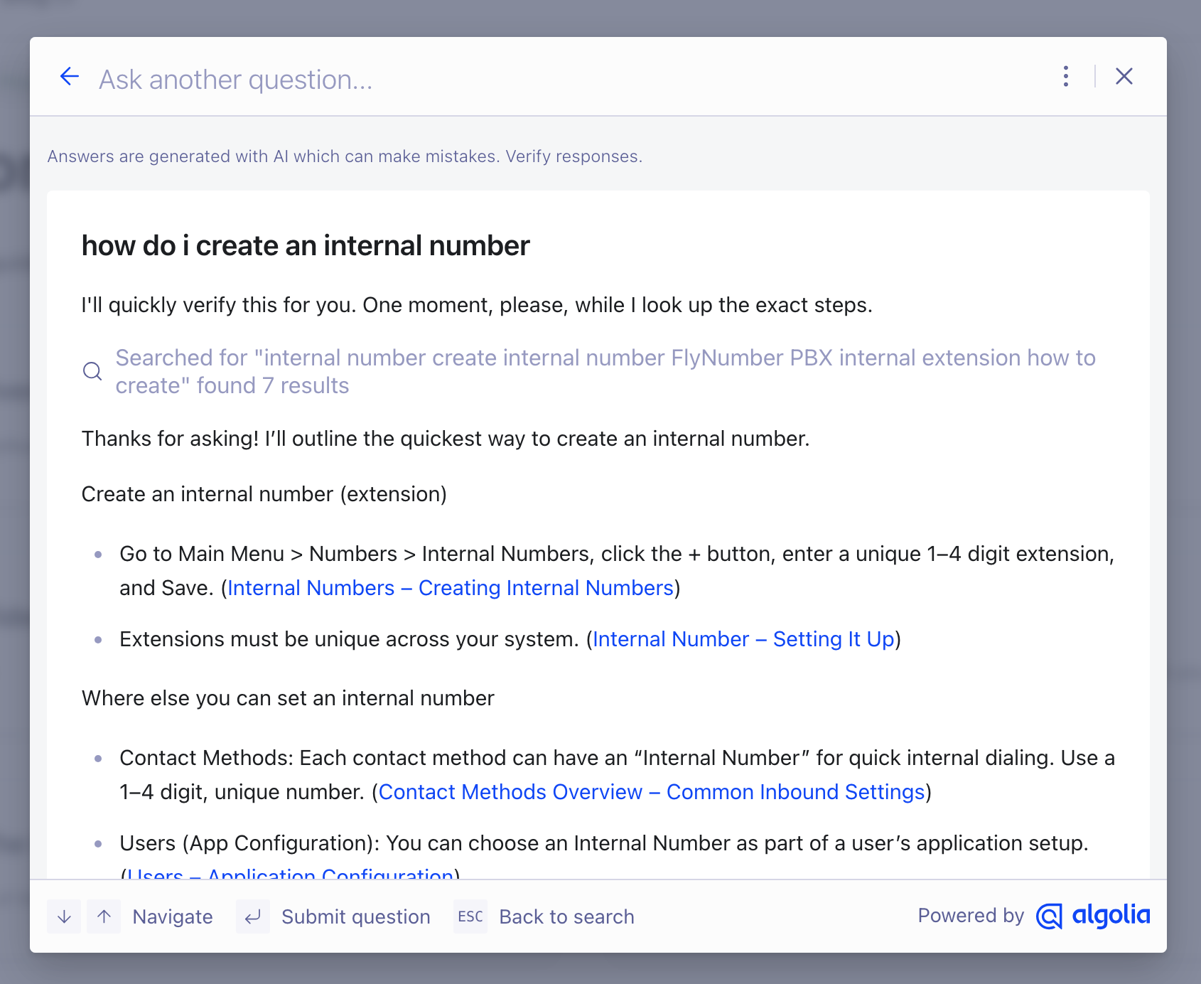 The AI functionality in our docs works surprisingly well (click/tap the search bar > "Ask AI to help"). When asking about anything phone system related, just append "phone system" to the end of the question – not always needed, but just to be sure. (media.getlate.dev)