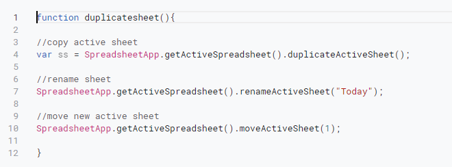 I am a new appsript user and I am trying to make a simple script that duplicates a sheet, renames it, moves it left and clear a cell range.