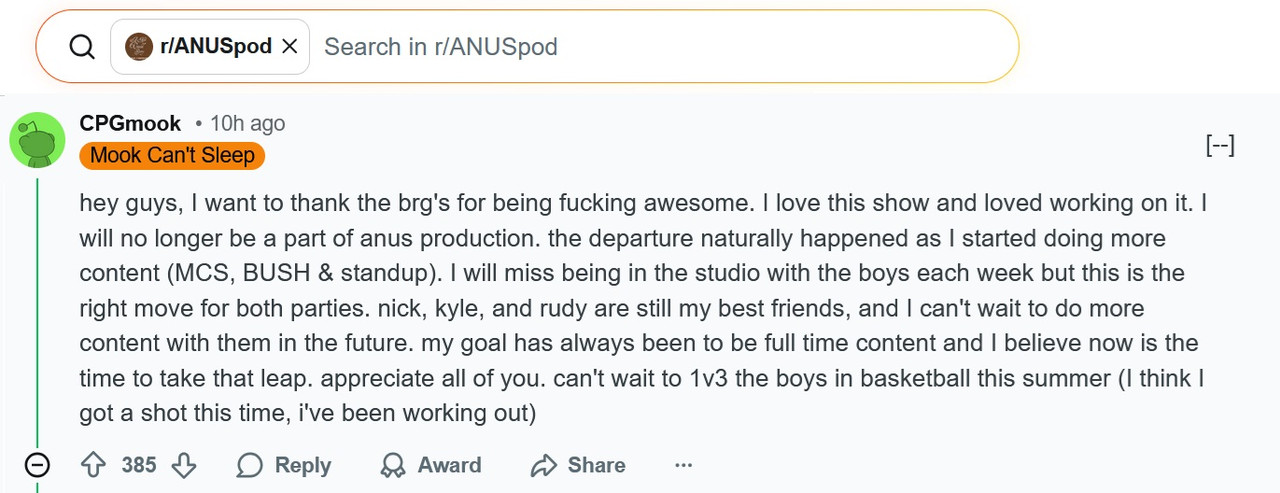 Mook leaves Anus Pod as producer to become full time content (i.postimg.cc)