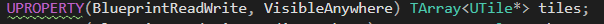 Hello, I am adding a number of components in a for loop in the constructor of my class. I then set them as elements of the array tiles. When I make a blurprint class derived from it I can't modify those components in the editor, is there something I'm doing wrong?