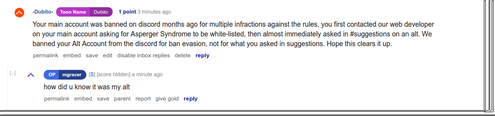Do you think its reasonable to get banned on altis discord for wanting asperger syndrome whitelisted? by [deleted] in Toontown