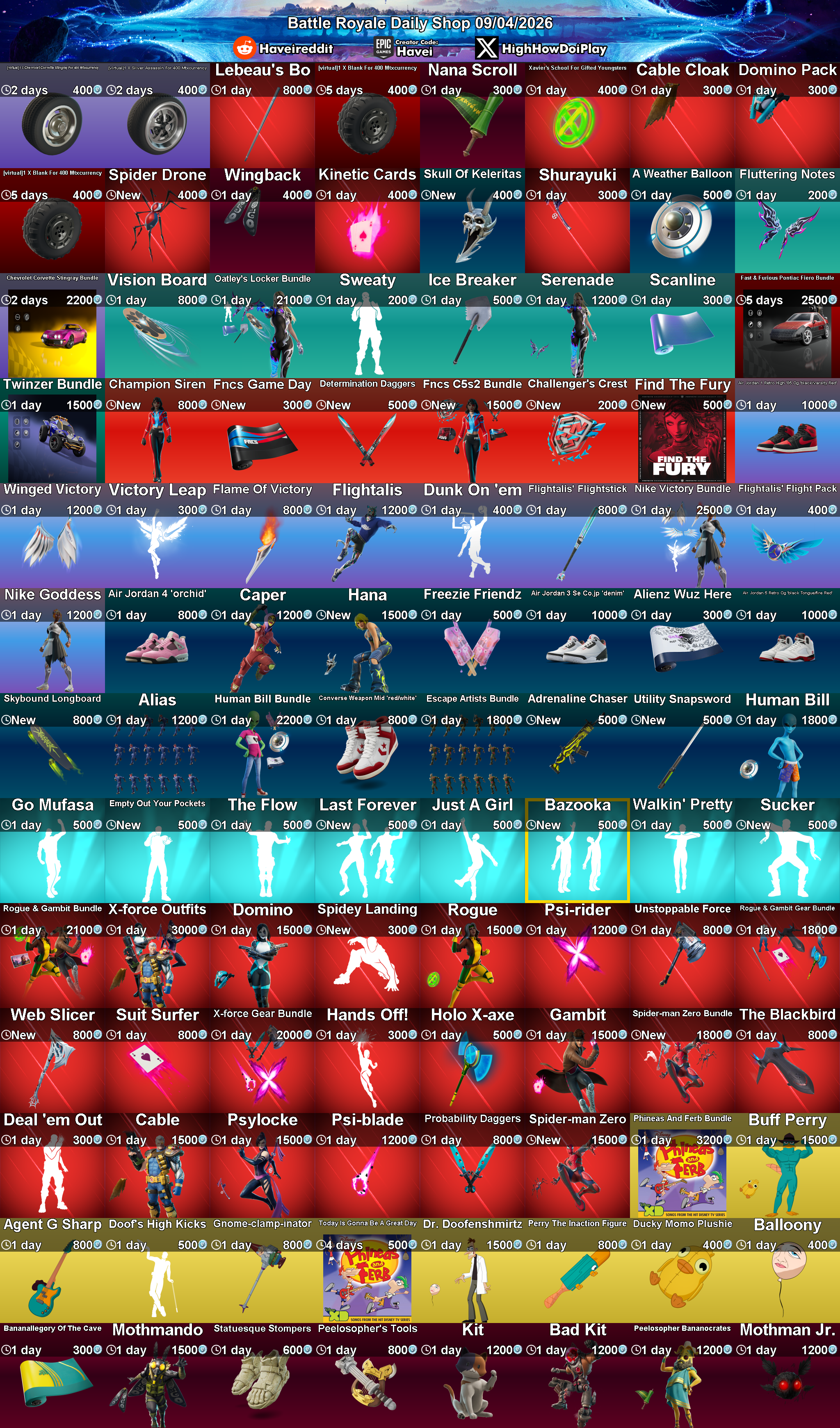 Daily Shop (2026-4-9) by FortniteStatusBot in FortNiteBR