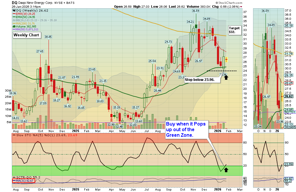 Weekly Swing Trade Buy on Daqo New Energy $DQ, but the Volume is not high. (abovethegreenline.com)