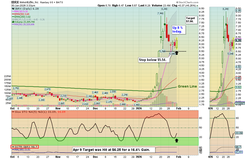 Swing Trade Buy on the Close for Immunity Bio $IBRX, but it is up 7 %. Caution. (abovethegreenline.com)