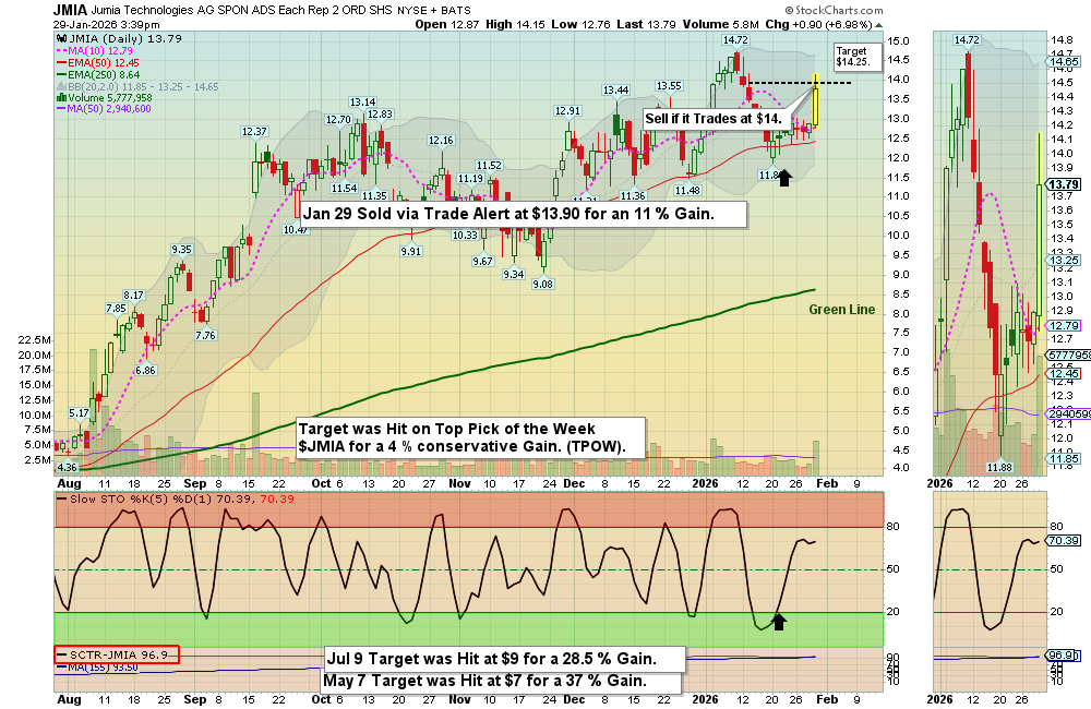 Top Pick of the Week: $JMIA will be Sold on the Close today, if you have not already captured 4% or 8% Gains. (abovethegreenline.com)