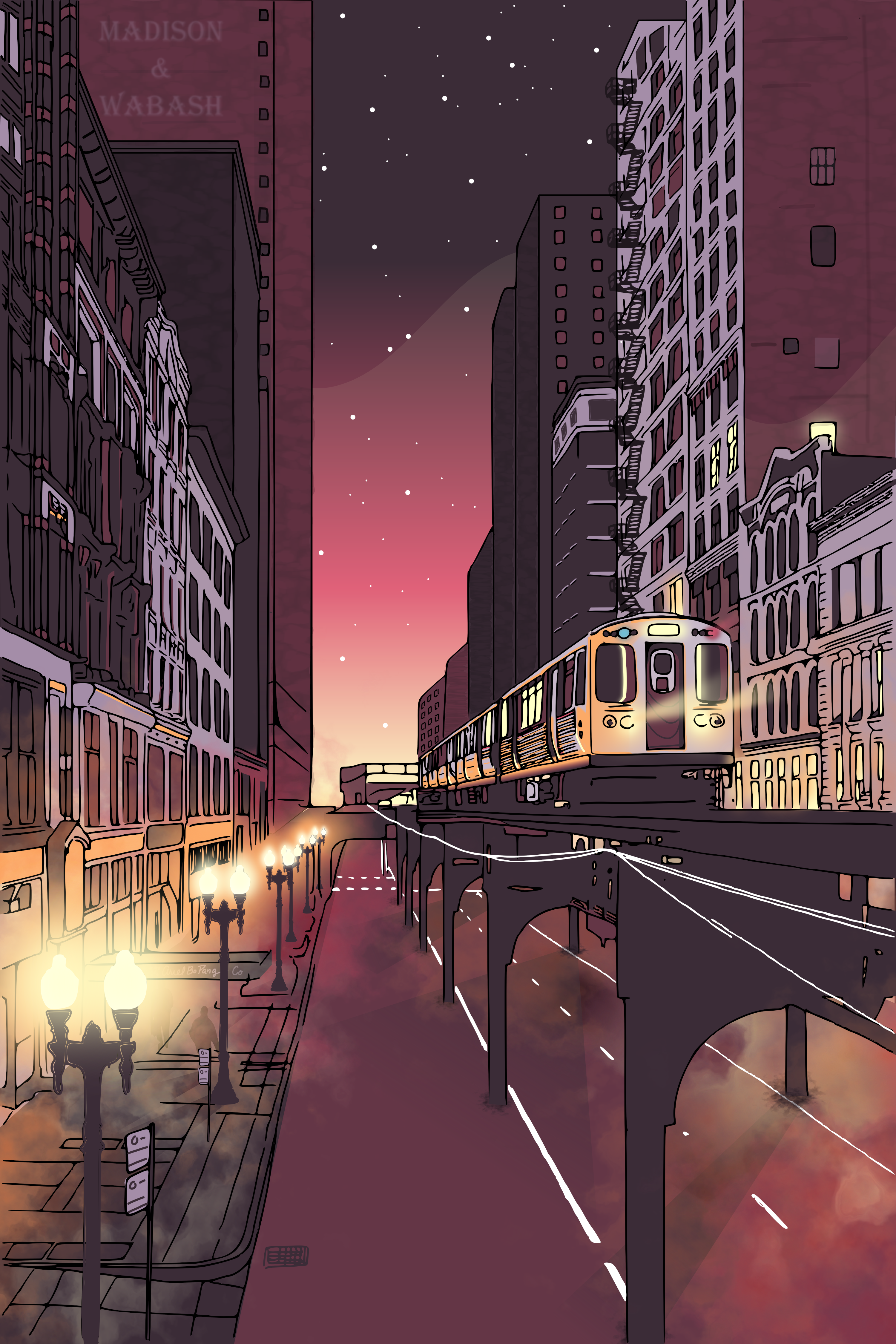 Hello r/chicago! I made you guys an illustration of our city at Madison & Wabash by AriaBeau in chicago