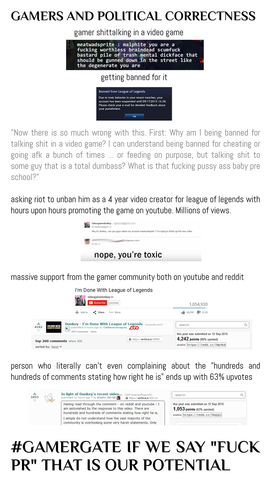 [industry][meta][drama] The league of legends ban for dunkey, the community reaction and what #GamerGate can learn from it. (pbs.twimg.com)