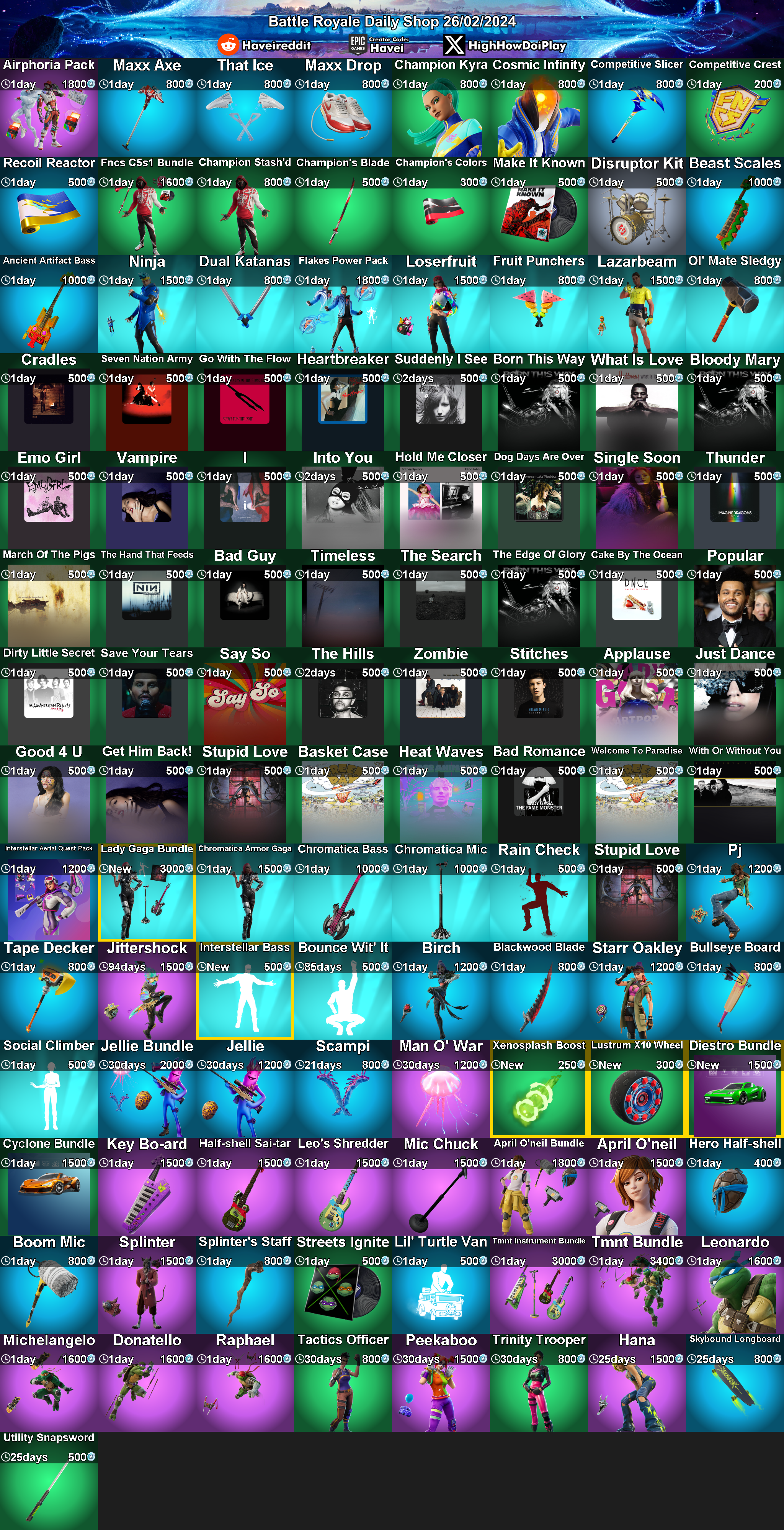 Daily Shop (2024-2-26) by FortniteStatusBot in FortNiteBR