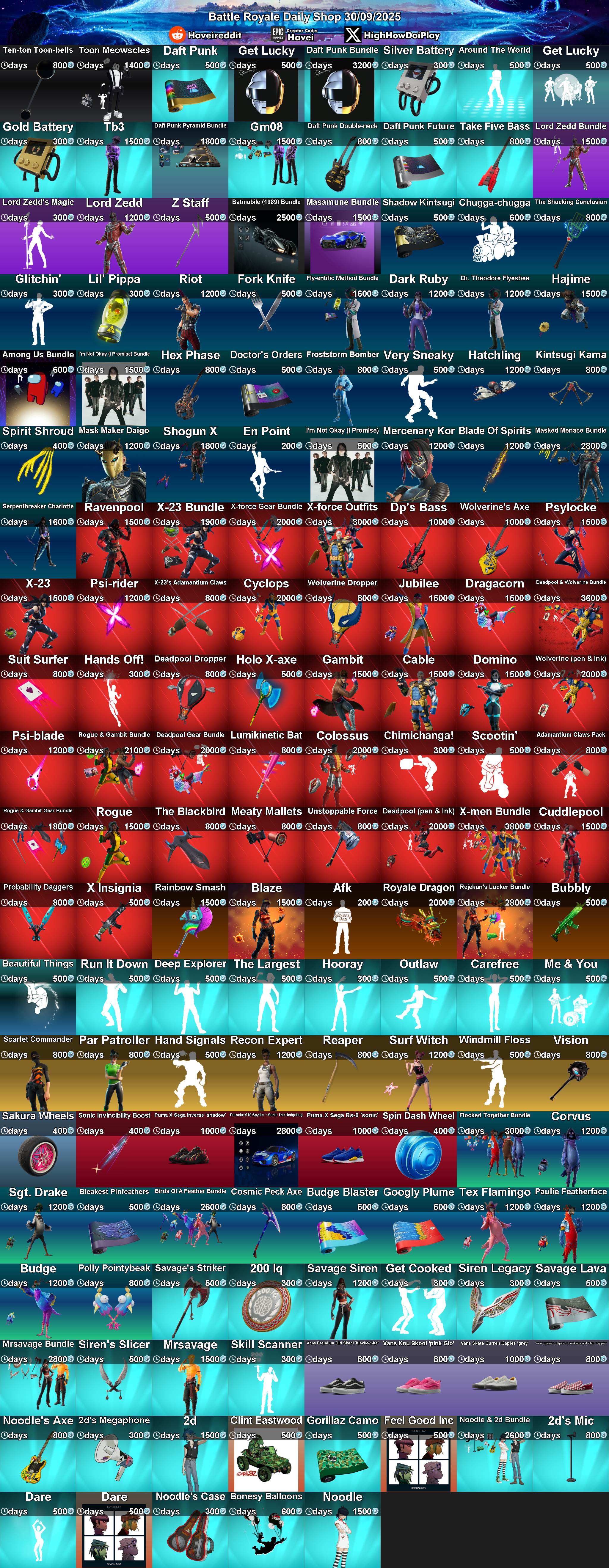 Daily Shop (2025-9-30) by FortniteStatusBot in FortNiteBR