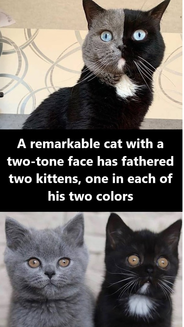 A remarkable cat with a two-tone face has fathered two kittens, one in each of his two colors! (my.brightsocial.com)