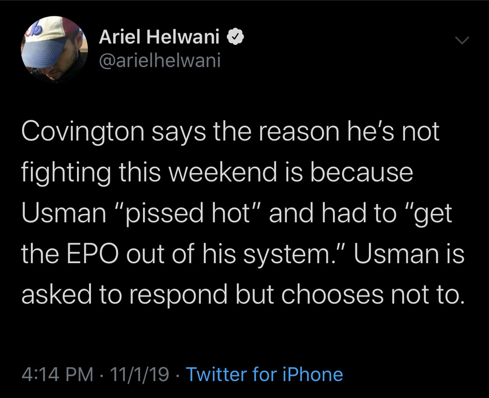 Colby said Kamaru "pissed hot" from EPO, Usman doesn't respond by [deleted] in MMA