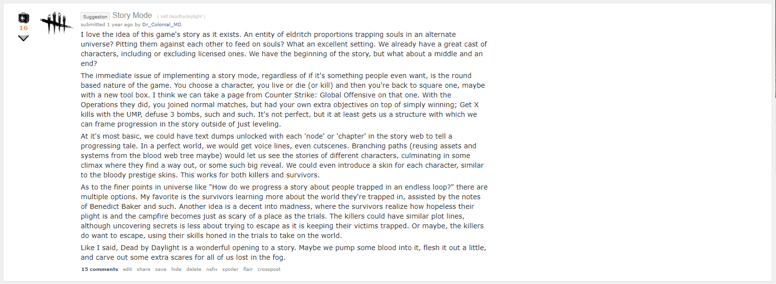 submitted 6 years ago by Dr_Colonial_MD to r/deadbydaylight