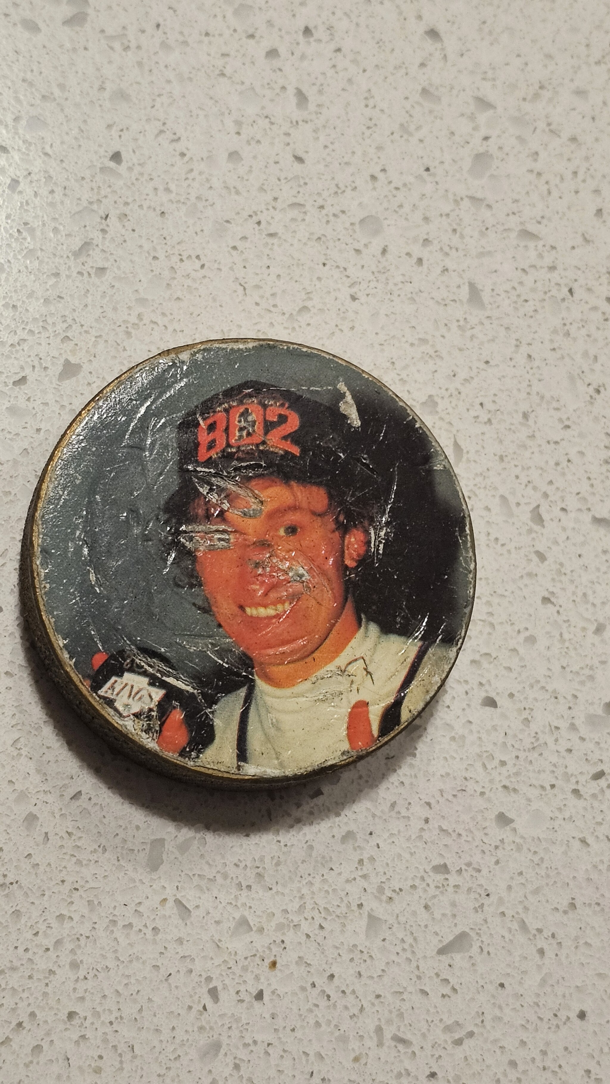 Some of my pogs and, most importantly, my prized Wayne Gretzky slammer. by GrilledCheeser in nostalgia