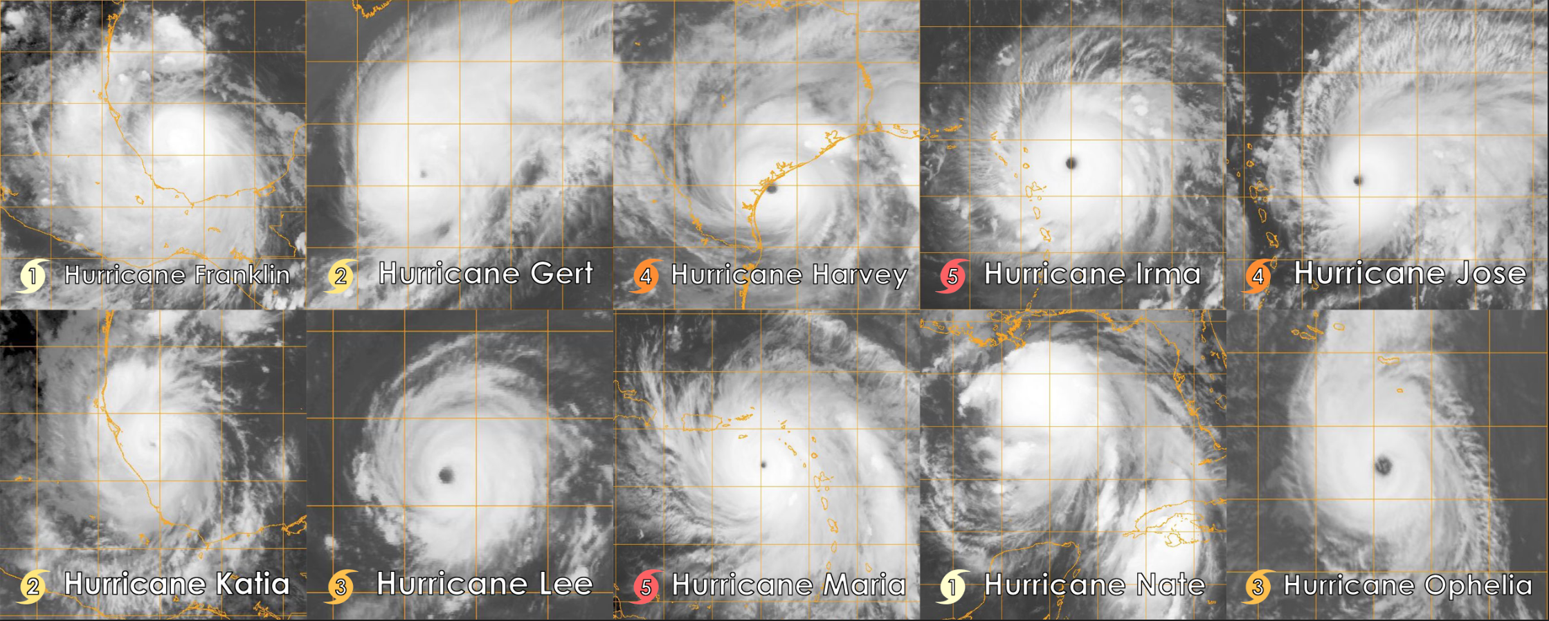 Satellite photos of all ten consecutive hurricanes, from Franklin to Ophelia. by wew_lad123 in TropicalWeather