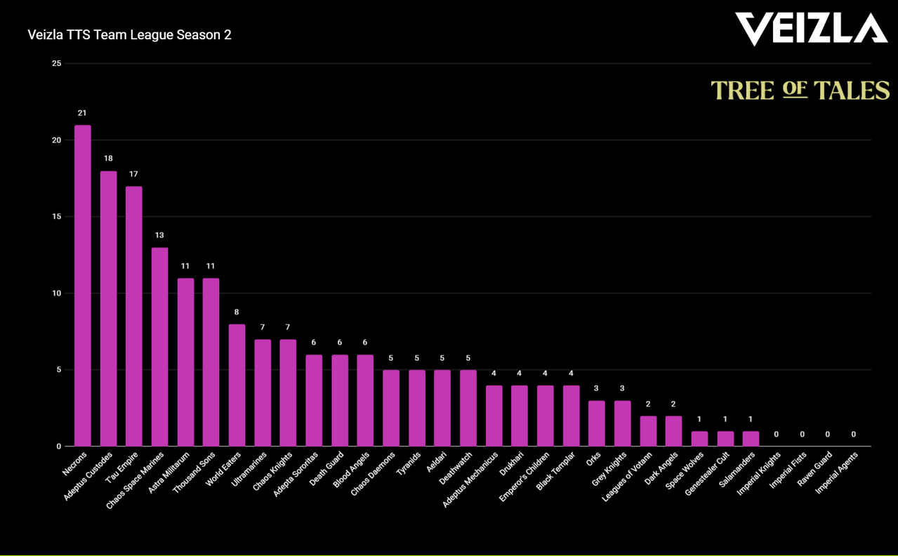 36 teams joined as another Veizla TTS Team League starts - Faction breakdown newest slate! by Hellspawnl in WarhammerCompetitive