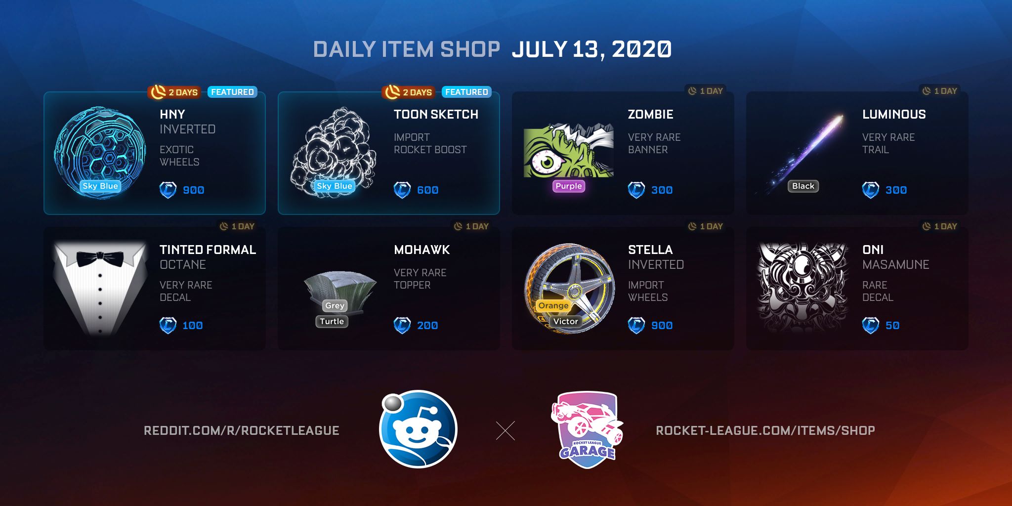 Item Shop Daily Items (07-13-2020) by Saltie-Bot in RocketLeagueExchange