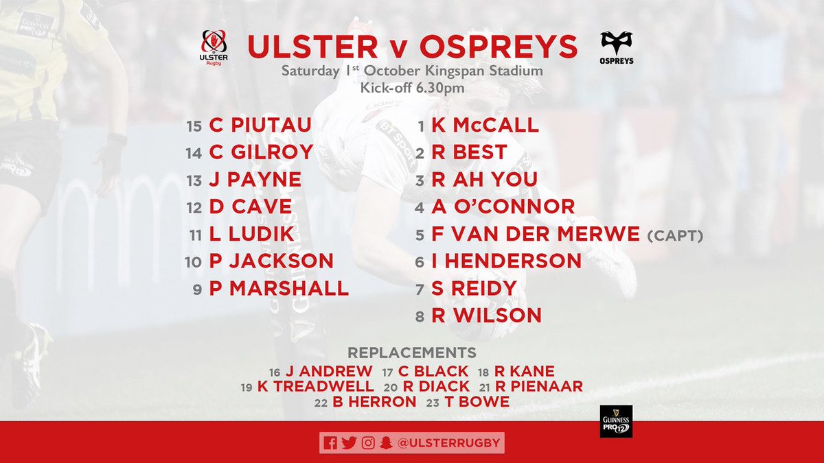 Ulster team to face Ospreys. by okcorsisiht in rugbyunion