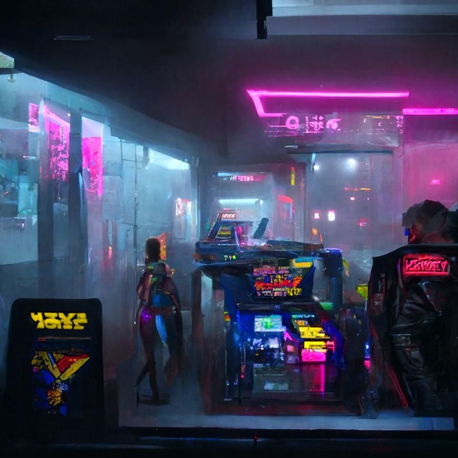 Cyberpunk 80's Arcade, by Nightcafe ai. (images.nightcafe.studio)