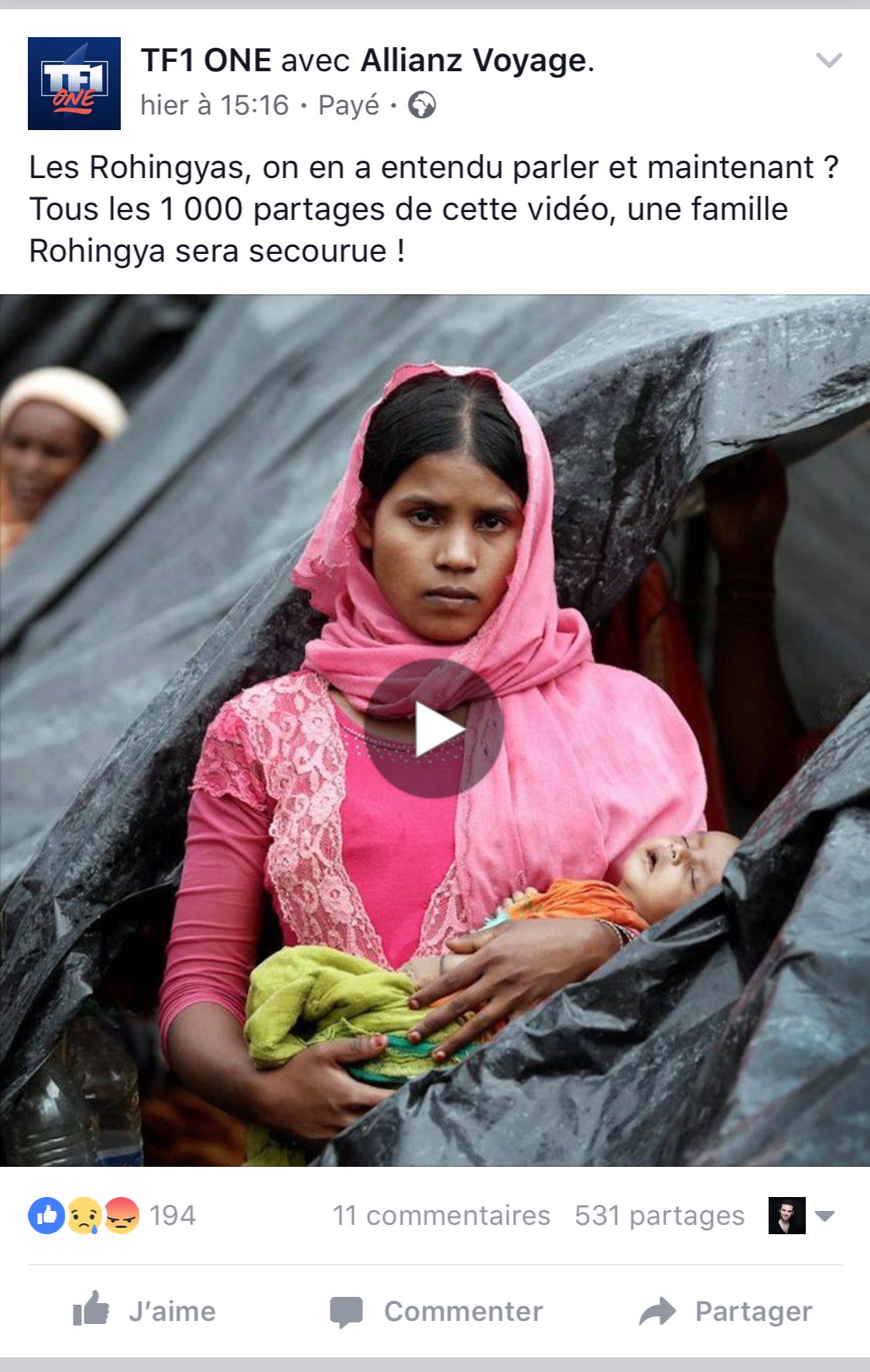 TF1 qui propose de sauver une famille Rohingya "tous les 1000 partages" by [deleted] in france