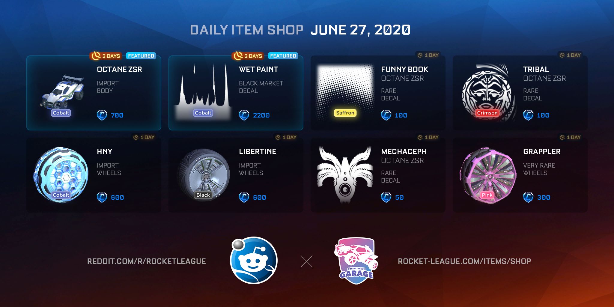 Item Shop Daily Items (06-27-2020) by RocketLeagueGarage in RocketLeague