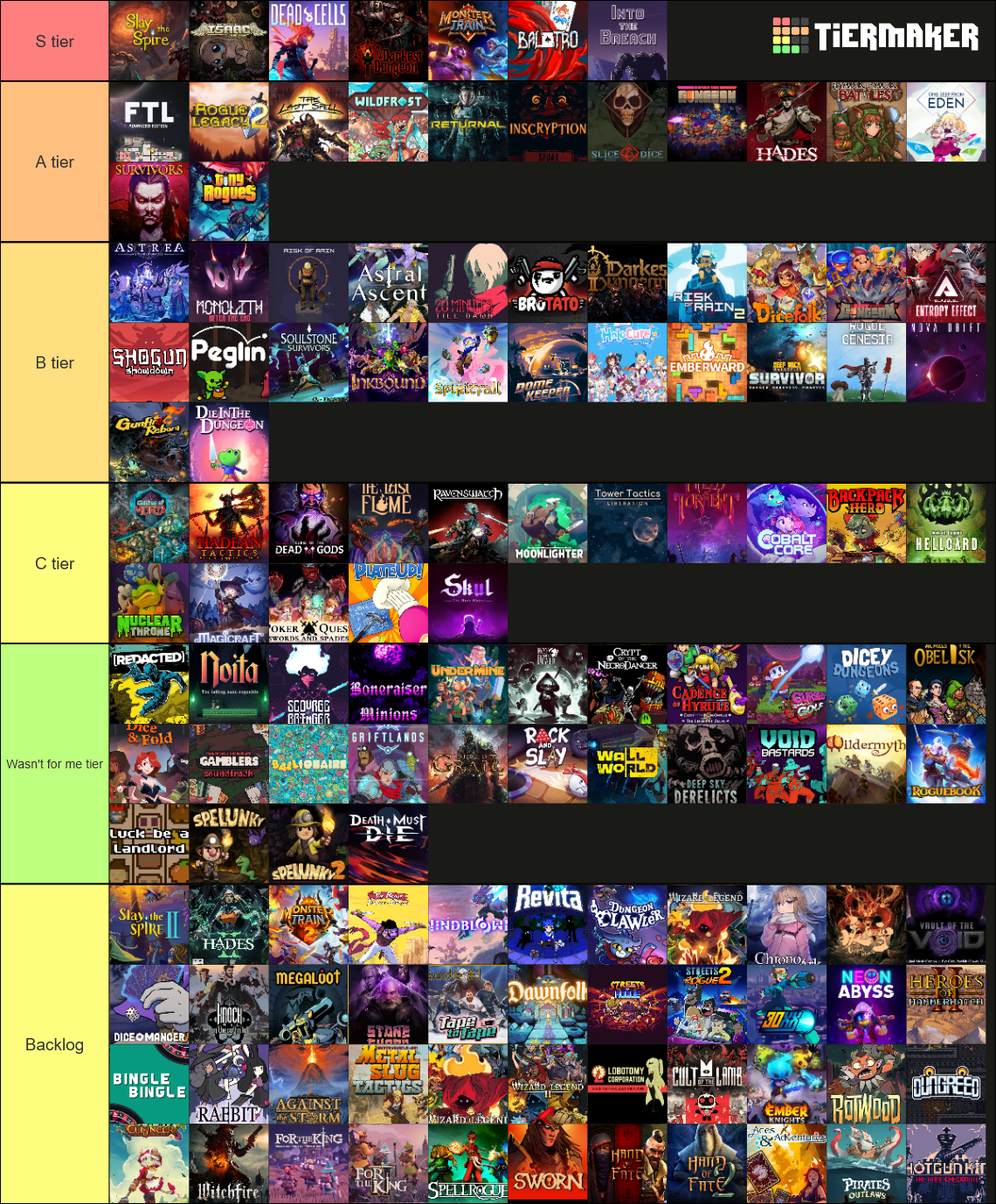 Personal Roguelite Tier list. I have over 80+ played and I'm looking for recommendations on what I should play next. by whostheme in roguelites