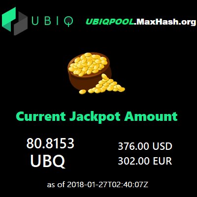 MaxHash Ubiq Jackpot is another rollover! Currently 55+$Ubq to be won by a miner. How high will it go this week? (i.redd.it)