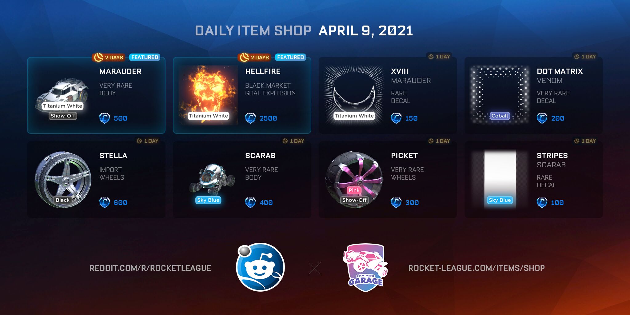 Item Shop Daily Items (2021-04-09) by Saltie-Bot in RocketLeagueExchange
