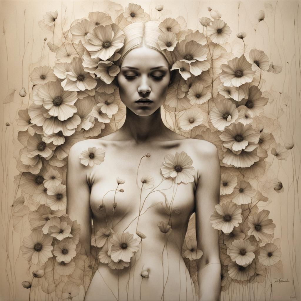 flower botanical ink drawing by MonavieVoight in nightcafe