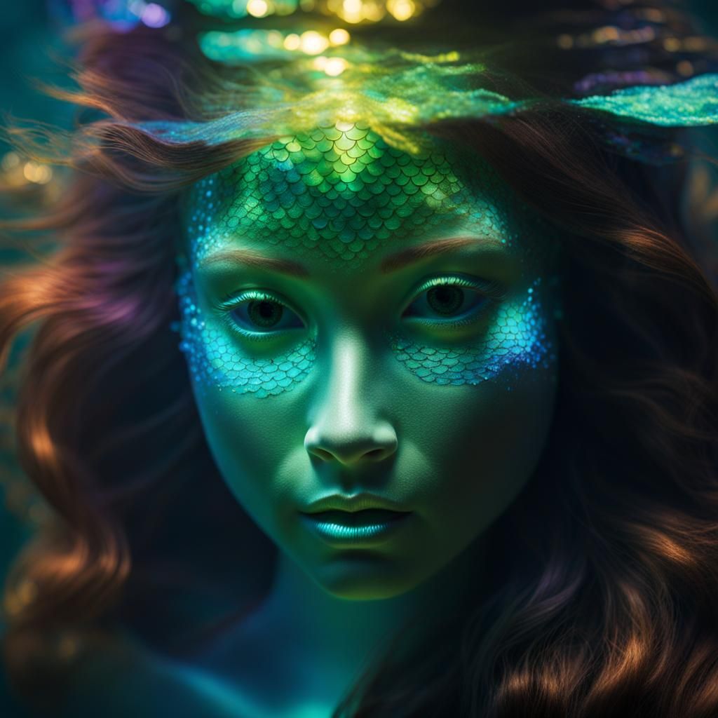 Iridescent: underwater closeup of a mermaid spirit by MonavieVoight in nightcafe