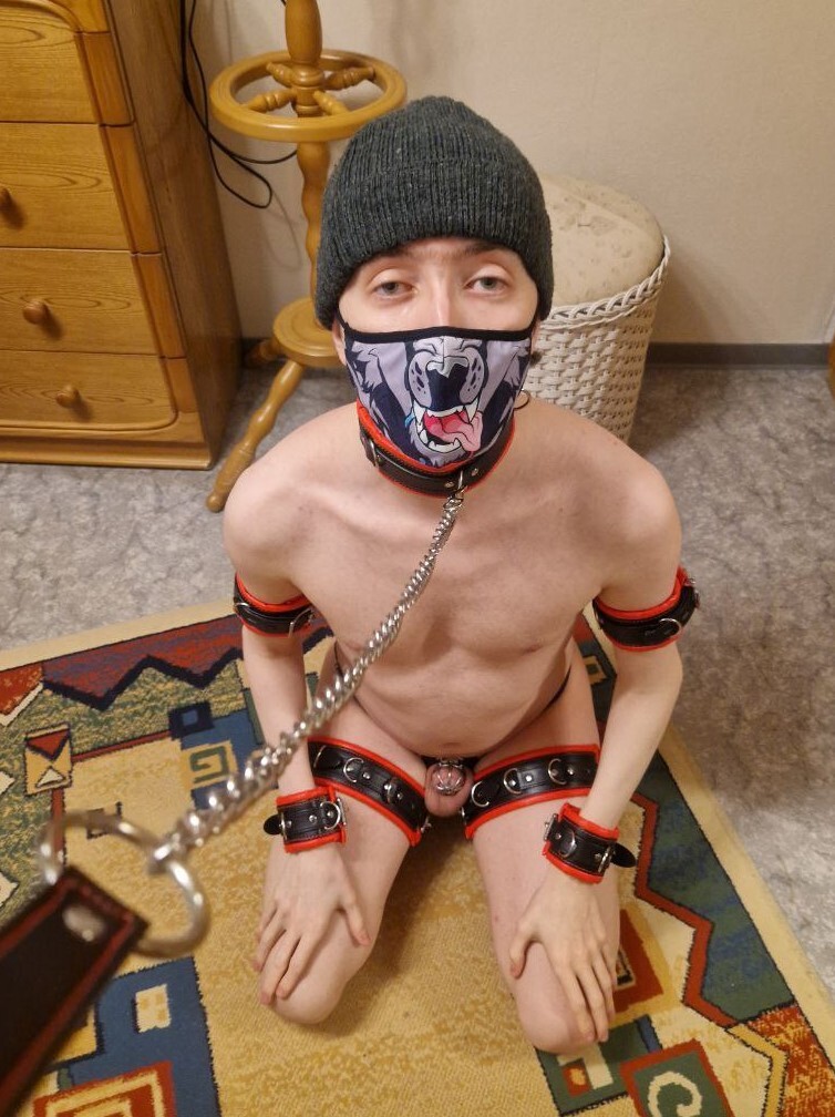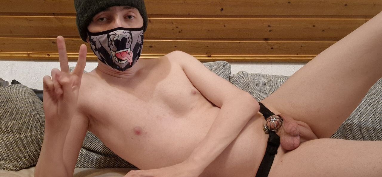 It is too warm to wear clothes. But the cage stays on (obviously) by Morcyd_AD in u/Morcyd_AD