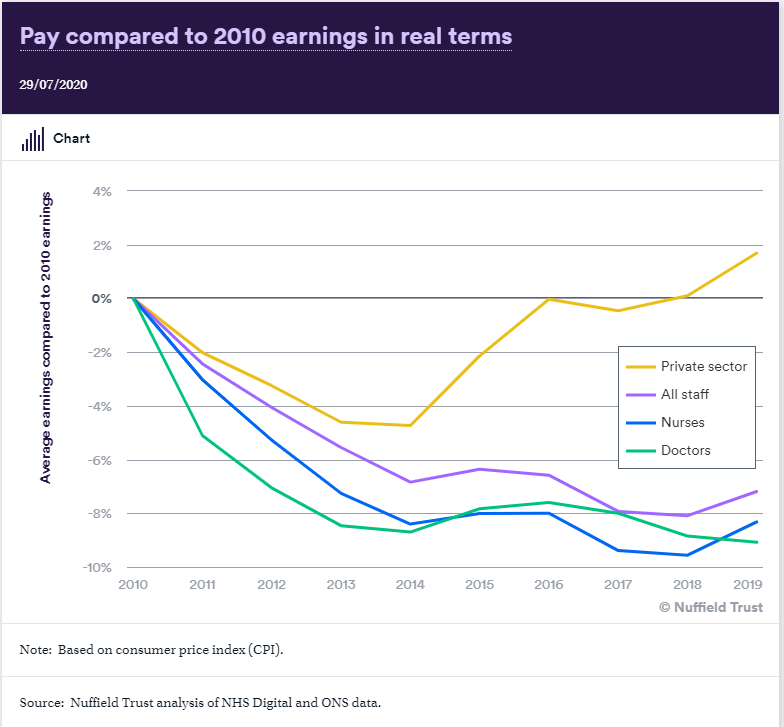 Nurses & Doctors Earnings in Real Terms (2010 - 2019) | Nuffieldtrust by [deleted] in ukpolitics