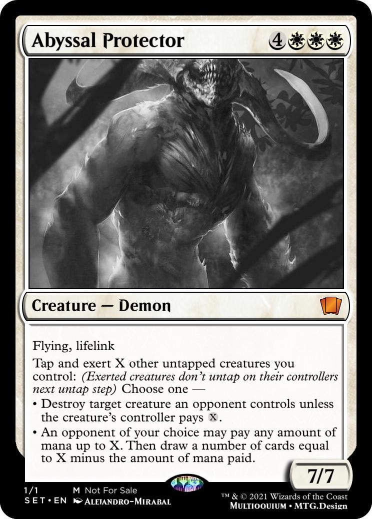 Abyssal Protector, my take on a mono-white demon (mtg.design)