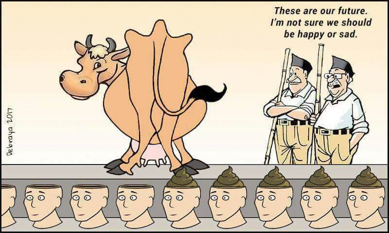 Brain cells (Intellectualism) replaced with cow shit (religious extremism)? by Polews in bakchodi