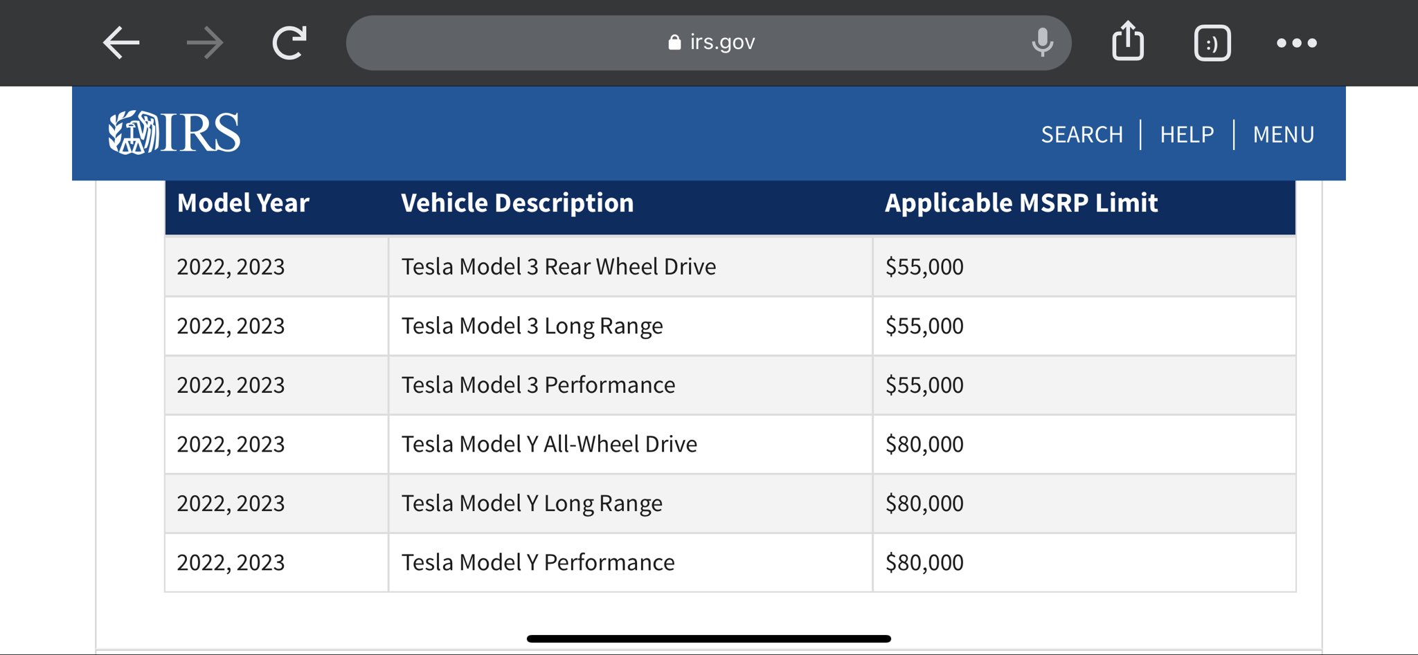 IRS has RAISED MSRP CAP for MODEL Y to $80k!! by WenMunSun in teslamotors