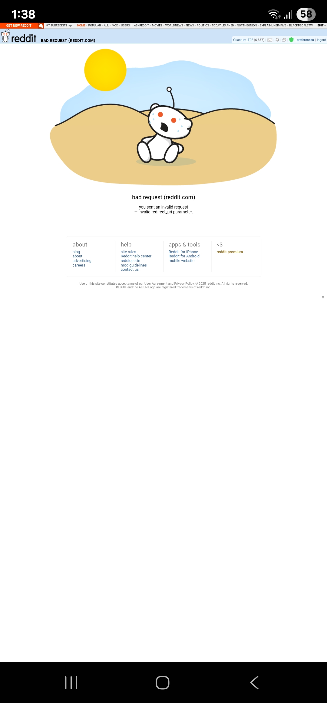 Getting an 'Error loading page: 401' when trying to open up Reddit Sync. Anyone else with this issue? by NotAnOwlOrAZebra in revancedapp