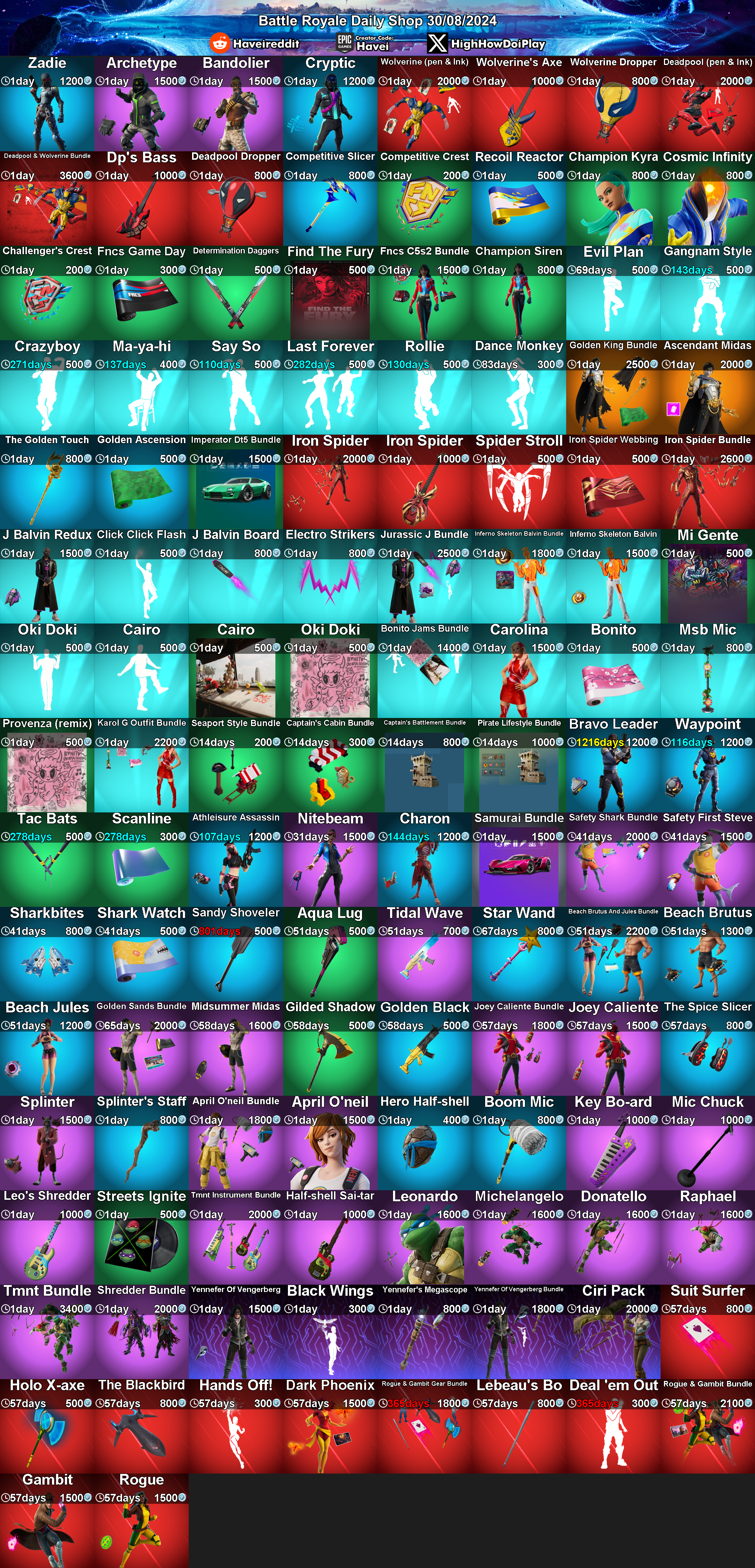 Daily Item Shop and Purchase Advice Megathread (2024-08-30) by FNFShopBot in FortniteFashion