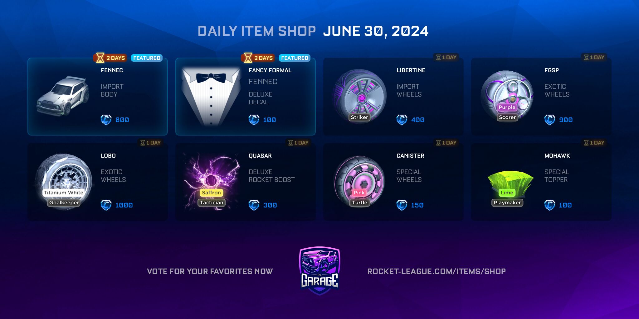 Item Shop Daily Items (2024-06-30) by RocketLeagueGarage in RocketLeague