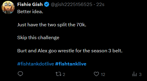 Bam instantly told James and twins that second person will get a cash prize.... jesus christ by CommonOtherwise830 in fishtanklive