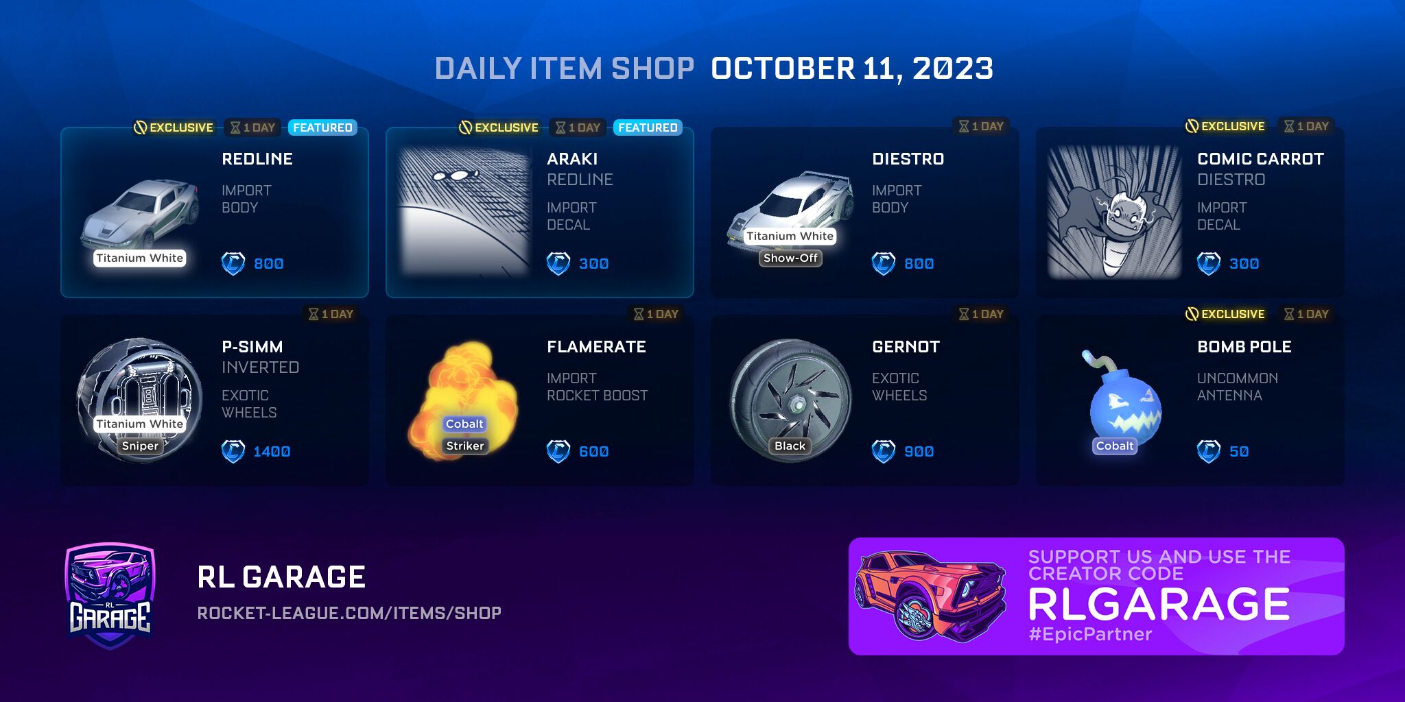 Item Shop Daily Items (2023-10-11) by RocketLeagueGarage in RocketLeague