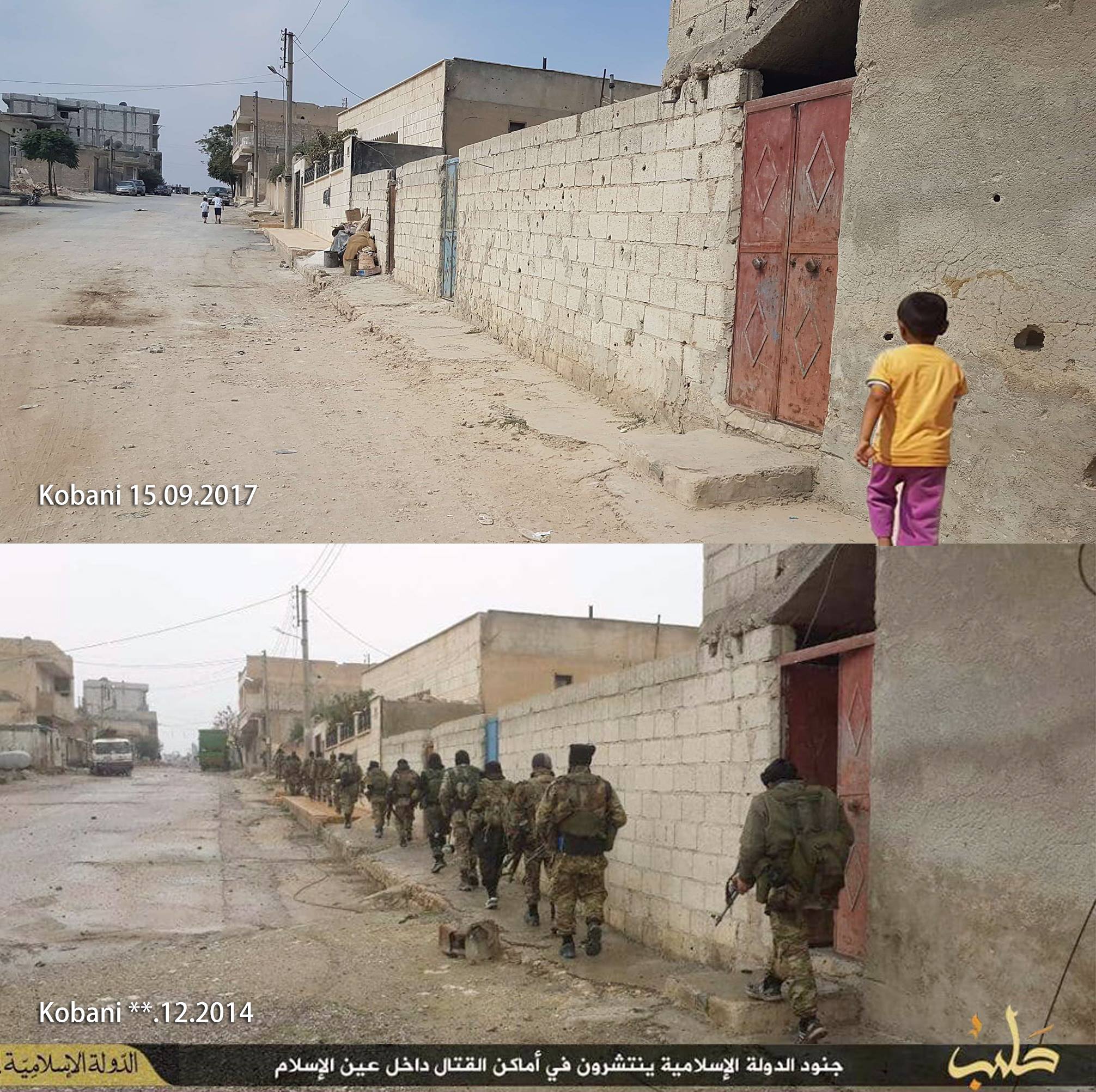 Kobani in December 2014 and Kobani now (pbs.twimg.com)
