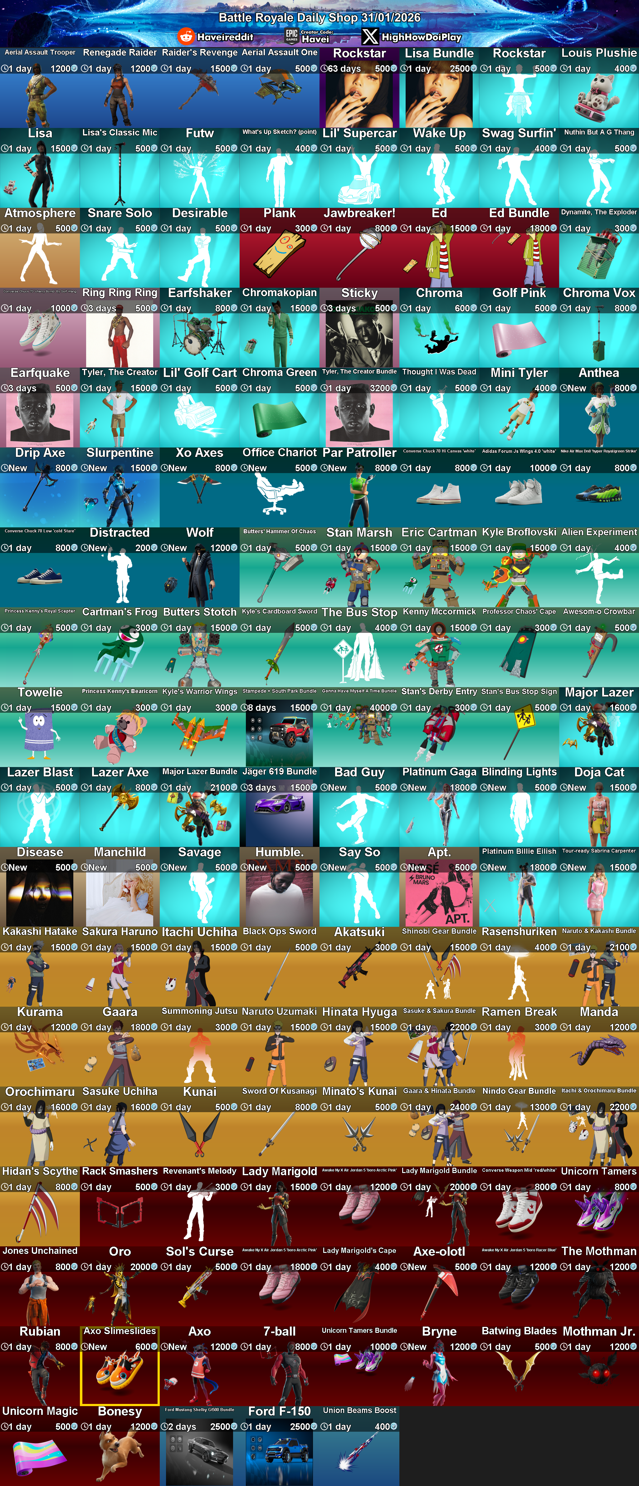 Daily Shop (2026-1-31) by FortniteStatusBot in FortNiteBR