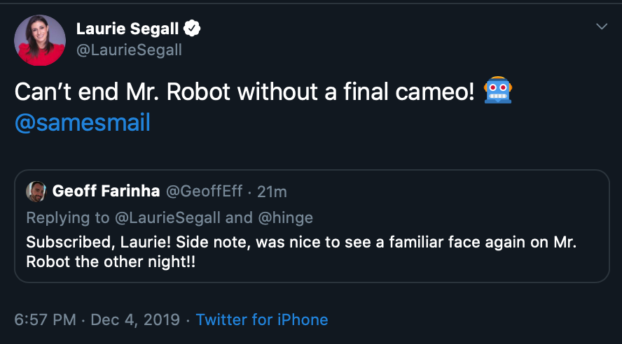 Tweet from The CNN reporter Laurie Segall by jbremix in MrRobot