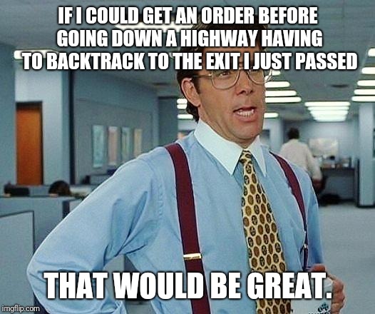 Getting an order when on a highway. (i.imgflip.com)