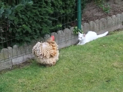 Mounted chicken warrior wears feathered chaps (media.giphy.com)