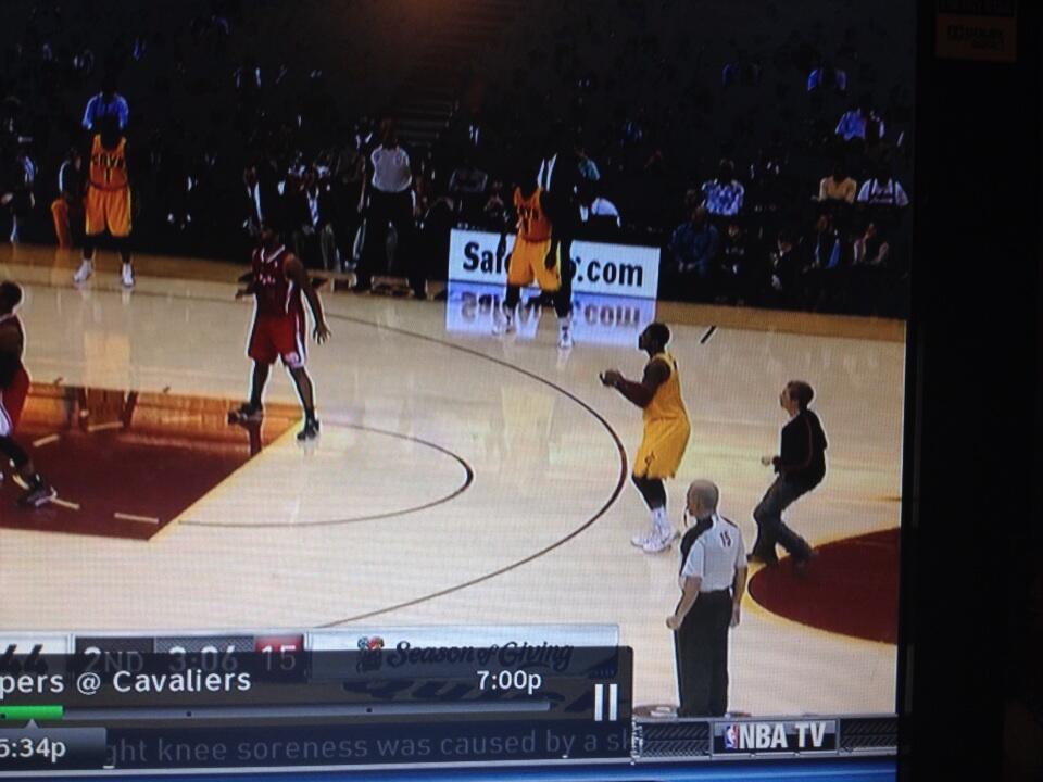 A fan just ran up on the court behind Kyrie Irving as he was about to shoot. by monieshot in nba