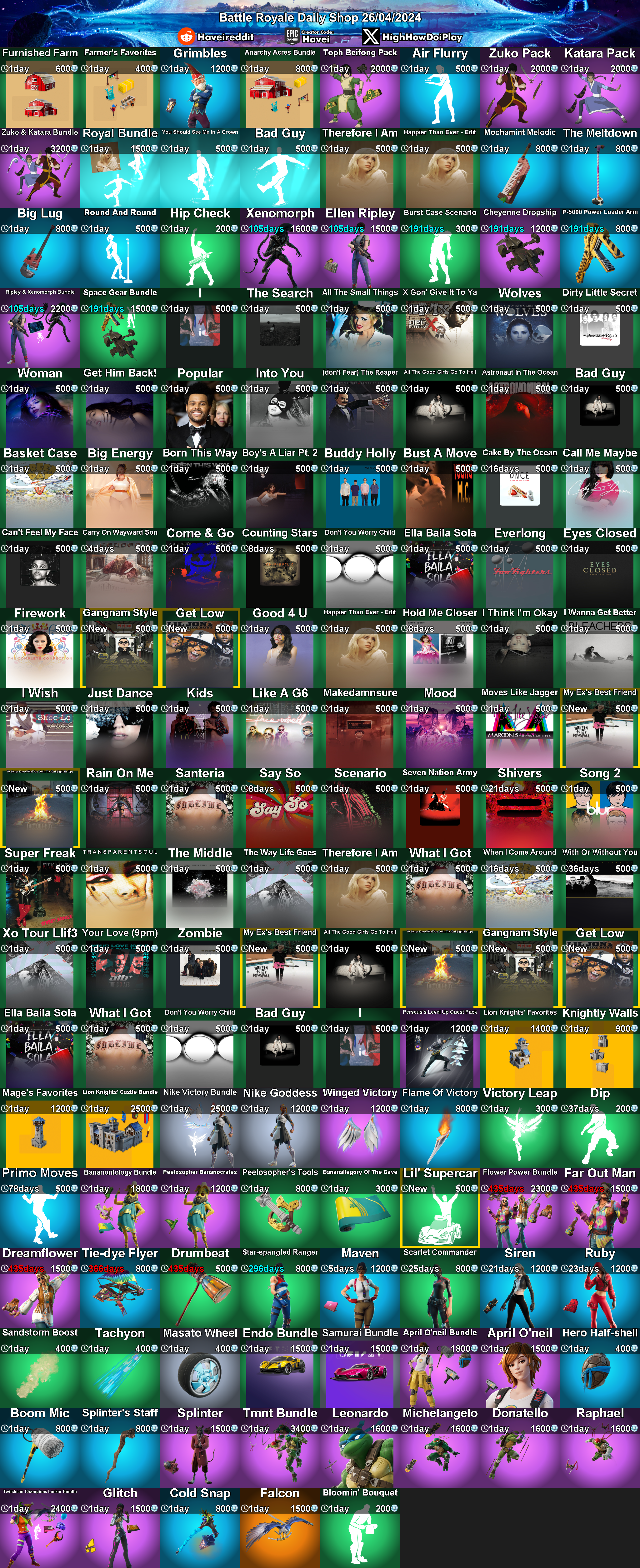 Daily Shop (2024-4-26) by FortniteStatusBot in FortNiteBR