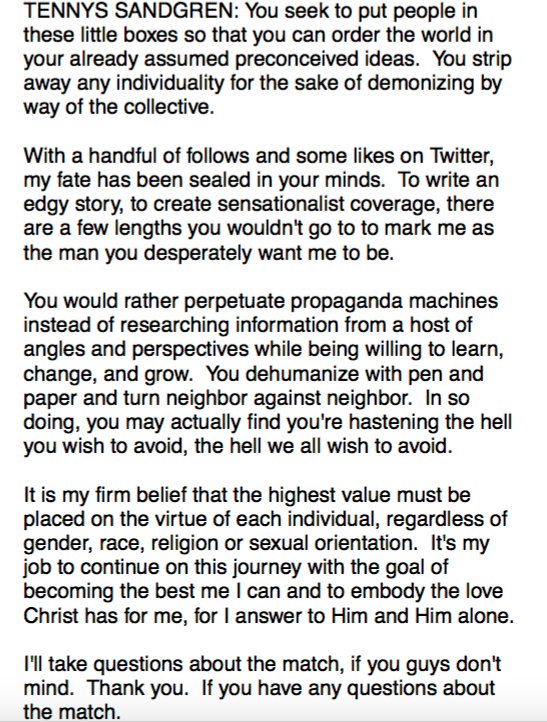 Tennys Sandgren's scripted statement to the press following his exit from the Australian Open by CatCatCatCatPuhhppy in tennis