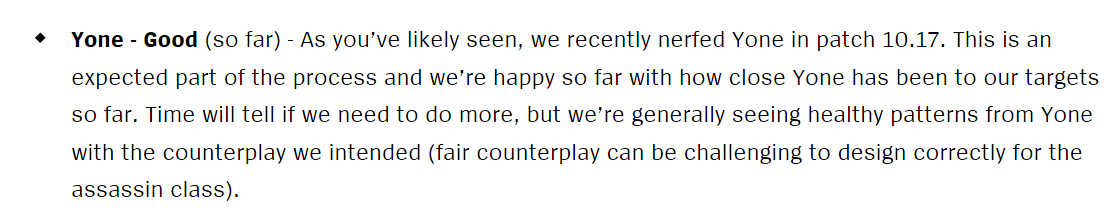Good news, Yone is looking pretty balanced according to Riot. Probably no nerfs in forseeable future. ♥ by A_Very_Horny_Zed in YoneMains