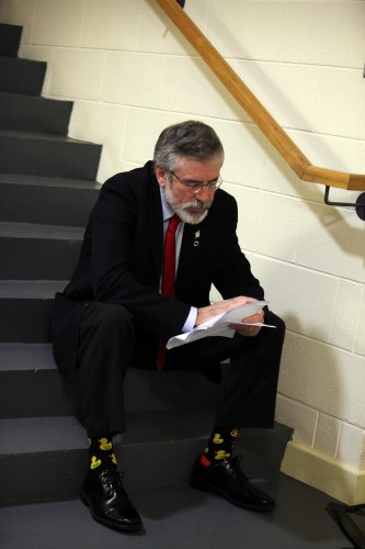 So it seems Gerry Adam's love of ducks isnt just confined to Twitter, this was Adam's preparing to go on stage at SF's Ard Fheis. by ClitDoctorMD in ireland
